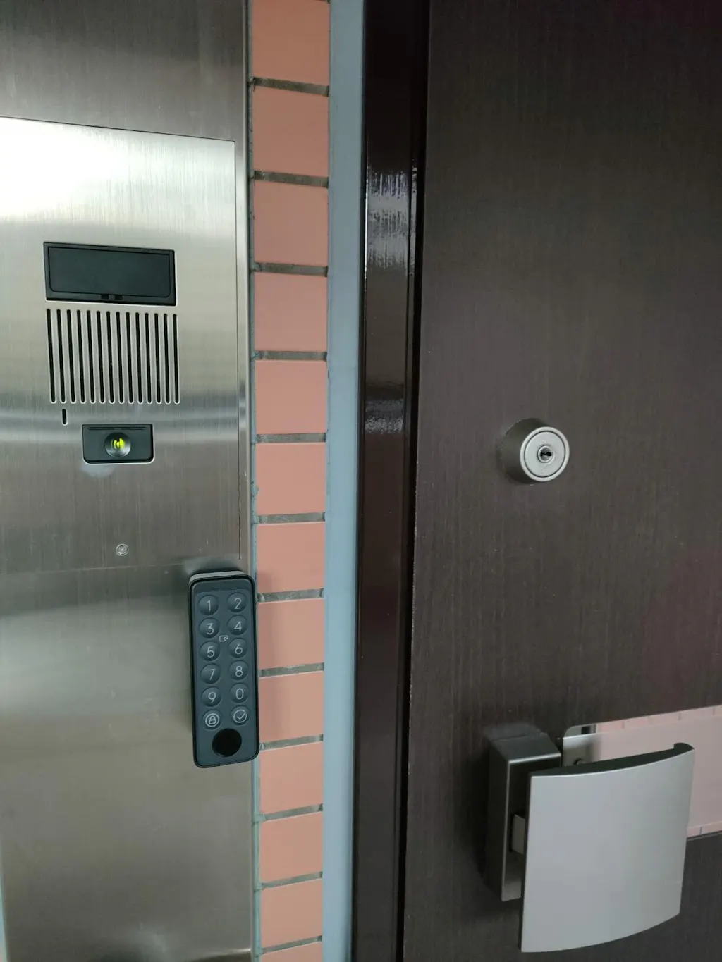 前々から興味があったのですが築40年近くドアも特殊なので設置できるか不安でしたが購入者の中に同じドアで設置しておられましたので購入に踏み切りました。うちの玄関はかなり日当たりがよくかなり熱くなるので長い目で見ると両面テープは絶対に落ちると思いネジ止めしました。キーパッドもガンガン日が当たるのでコンセントカバーを加工してカバーしました。セッティングもスムーズにできましたし簡単な操作のみでロック、解除できるので結論から言うと購入して大正解でした。ただ電池が特殊で高い。電池容量やロック本体の大きさの関係かもしれませんがせめて単2くらいが良かったかなと。電池の維持費がねぇ、、、と思います。マイナス点はそれだけです。